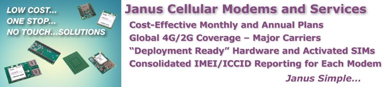 Whether you are deploying your Janus POTSwap just outside Akron or downtown Honolulu, or your CellBridge LTE310SMT application in Dublin or LTE400AP solution in the Central African Republic or LTE910CF based gateway in Kuwait or the Philippines, Janus has a low cost data or voice plan available to meet your project requirements.